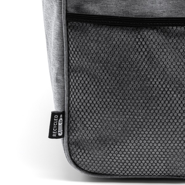 Multifunctional bag made from 300D RPET in a heather finish design. 30 litres capacity. Zip fastening in main and front pocket. Side mesh pocket. Adjustable shoulder strap included.