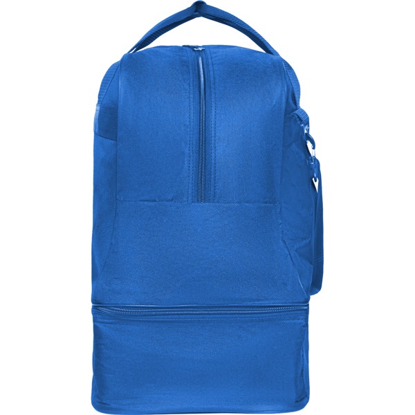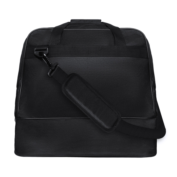 Sports bag with double handle and a long adjustable carry strap. Main pocket with double puller. Shoe pocket with removable compartment. Damp-proof. Hard bottom. Easy cleaning. 53 litres capacity.