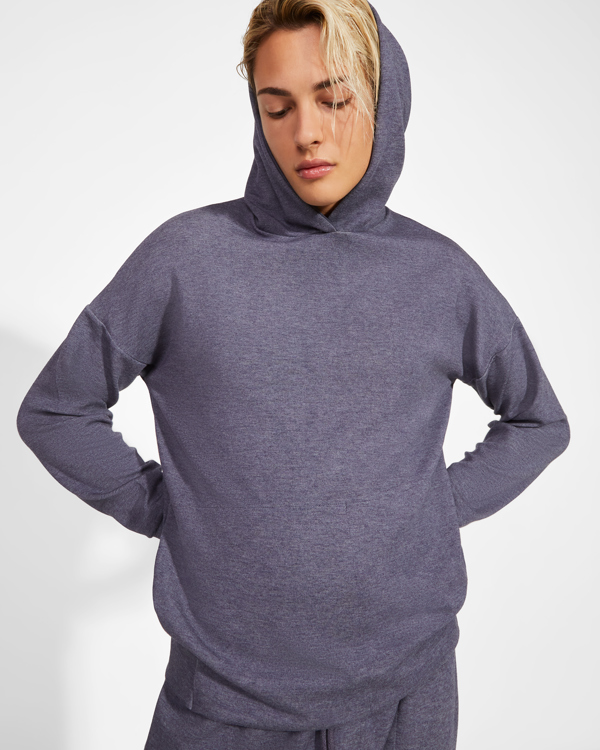 Unisex hoodie in light fabric. Side pockets. Cuffs and back waistband in main fabric.
