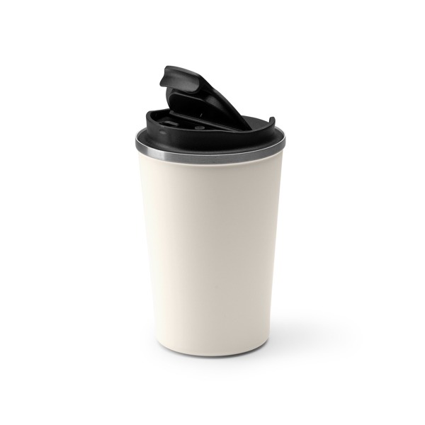 Double-walled 304 stainless steel thermal tumbler in a ceramic finish design. Safety screw lid. Anti-slip base. Capacity: 400 ml. Presentation in design box.